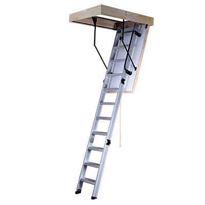 Hliníkové schody jsou složené ze třech hlavních dílů. Dřevěného rámu o výšce 170mm s těsněním, zatepleného víka a vlastního žebříku. Zateplené víko obsahuje polystyrén a je oboustranně opatřeno bílou HDF deskou. Na víku je namontován složený třídílný hliníkový žebřík. Hliníkové schody jsou opatřeny párem ocelových pružin, které brzdí pád při otevírání a napomáhají při zavírání.