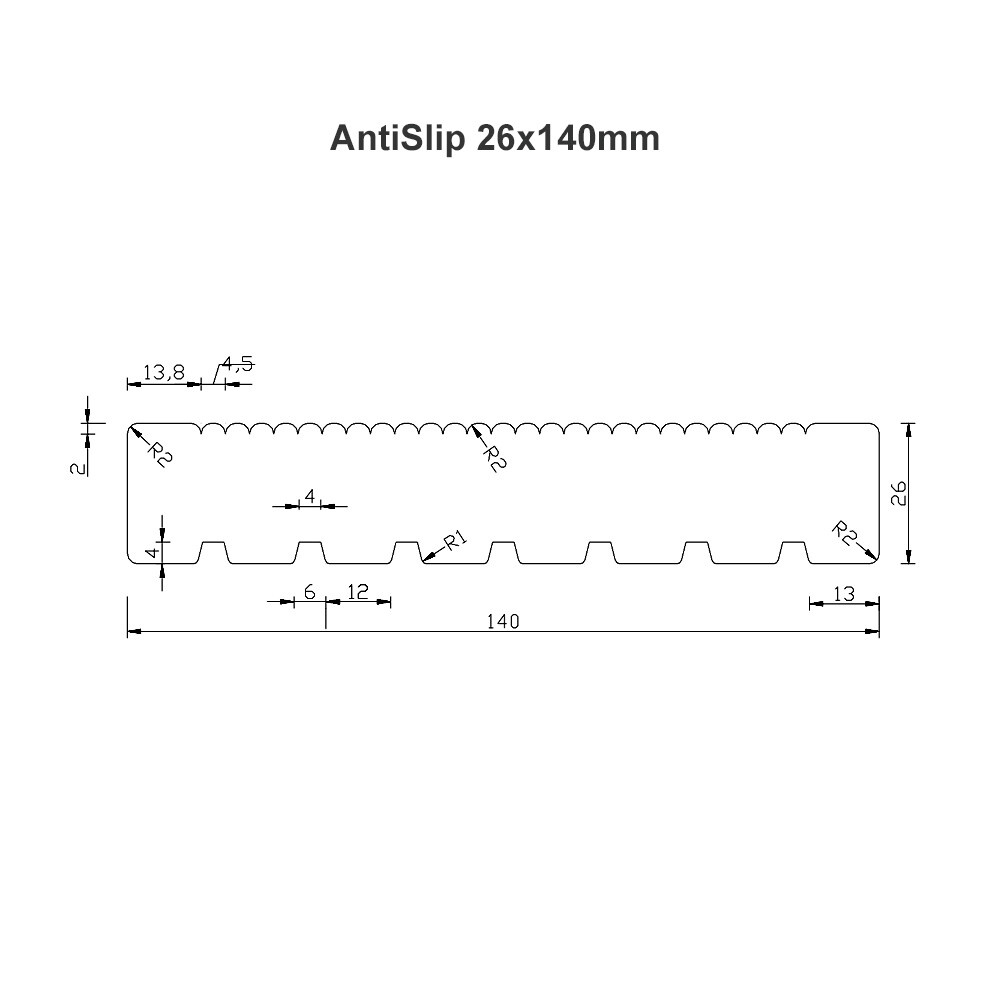 Dřevěná terasová palubka Antislip 26x140mm Délka palubky: Délka 3m