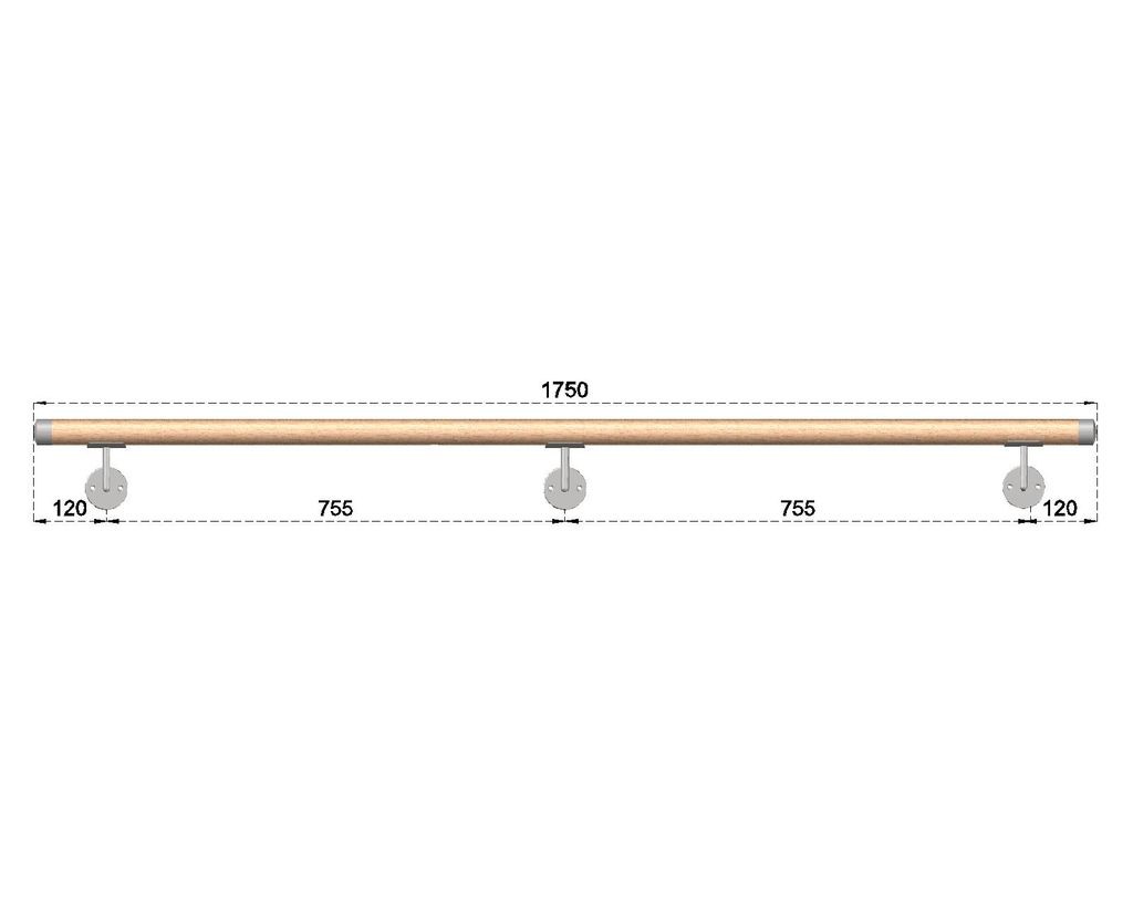 Dřevěné madlo na schodiště s nerezovými koncovkami 1,75m, EDB-M175-N