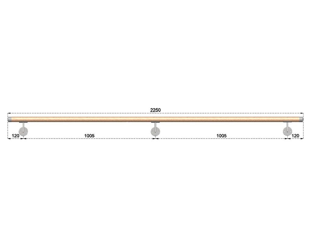 Dřevěné madlo na schodiště s nerezovými koncovkami 2,25m, EDB-M225-N