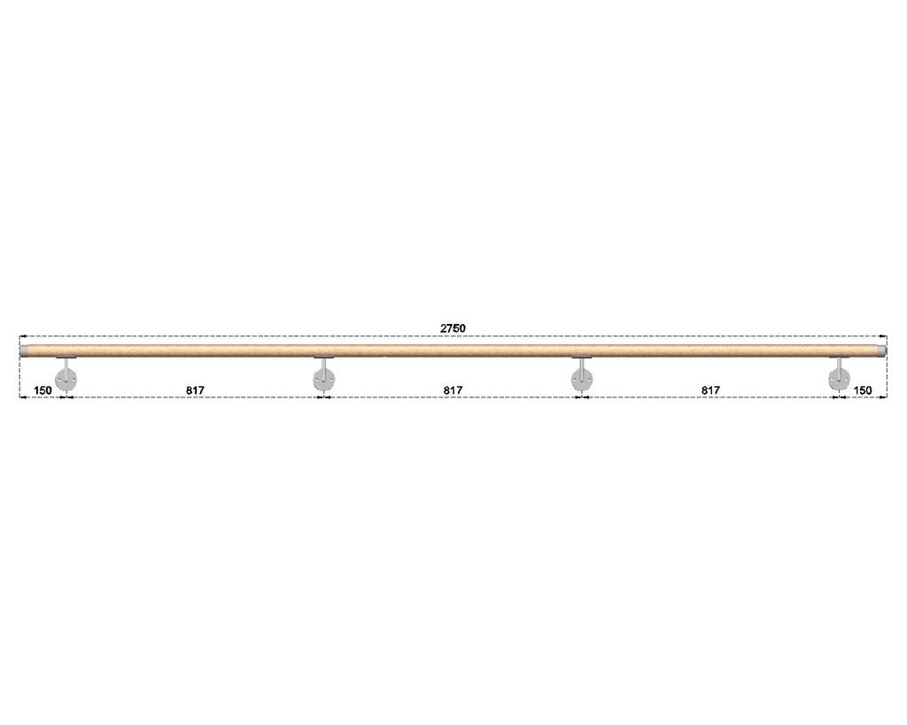 Dřevěné madlo na schodiště s nerezovými koncovkami 2,75m, EDB-M275-N