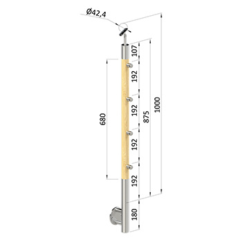 Dřevěný sloupek má průměr 42,4mm. Výška sloupku je 1137,6mm a po namontování madla vytvoří zábradlí o celkové výšce 1m. Sloupky nerezového zábradlí se osazují osově ve vzdálenosti 800-1200mm.