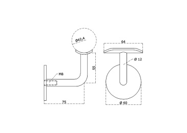 Držák madla EB1-4308 umožňuje ukotvení madla ke zdivu. Držák je pevný, sklon se upravuje natočením držáku na kotevní závitové tyči. U tohoto držáku tedy není vidět kotevní šroub. Je vyroben z nerezové oceli třídy AISI 304 a lze je použít i do exteriéru. V prostředí se znečištěným ovzduším a prostředích se zvýšenou chemickou agresivitou (bazény) doporučujeme použití odolnější oceli třídy AISI 316. Povrchová úprava je standardně kartáčováním, na poptávku i lesk.