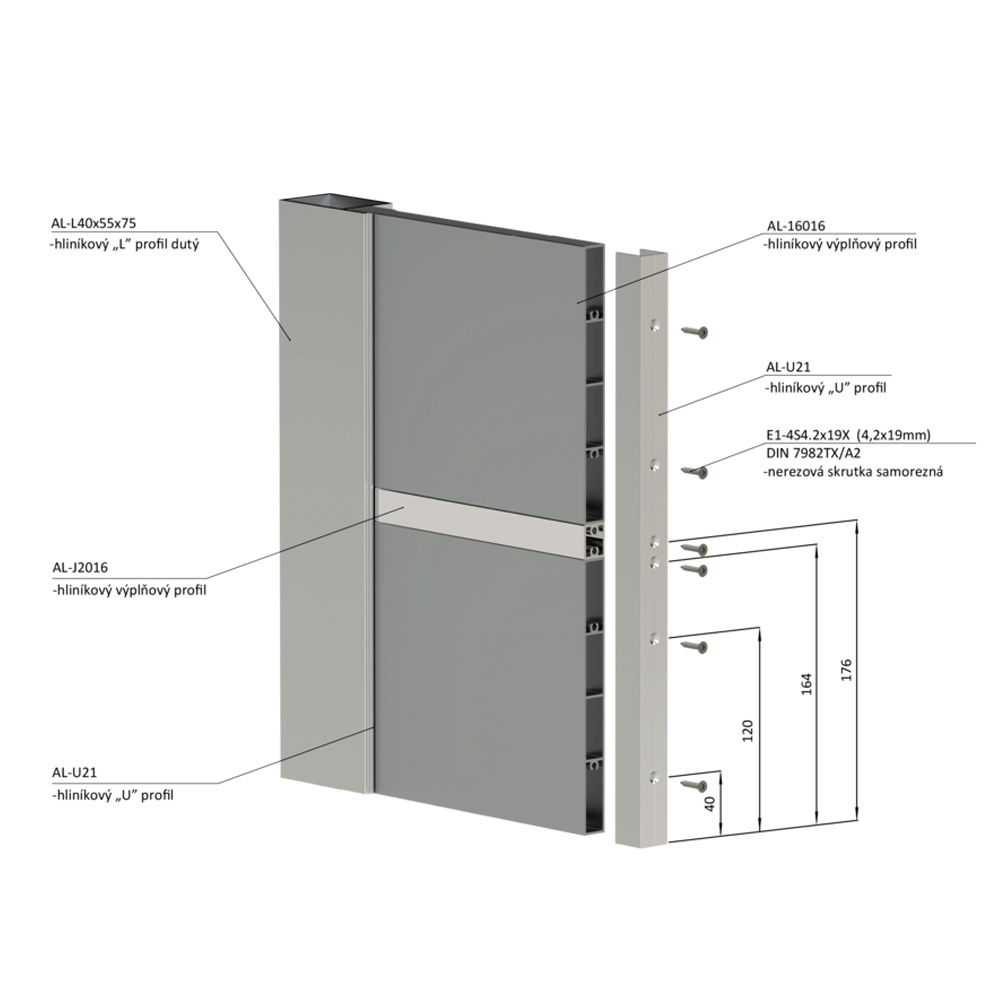 Tento systém umožňuje montovat celá výplňová pole, jen za pomocí nerezových vrutů, bez nutnosti sváření hliníku. Doporučená velikost polí je do 2m. V případě delších pak je nutné použít výztuhy.