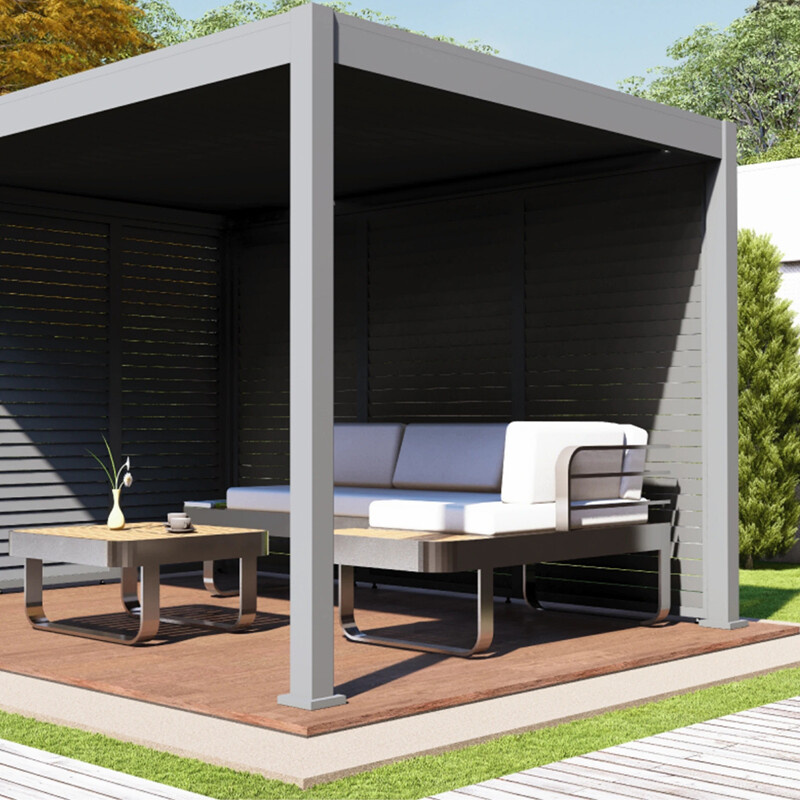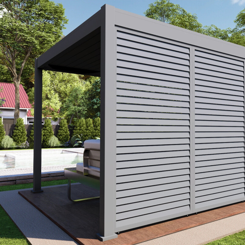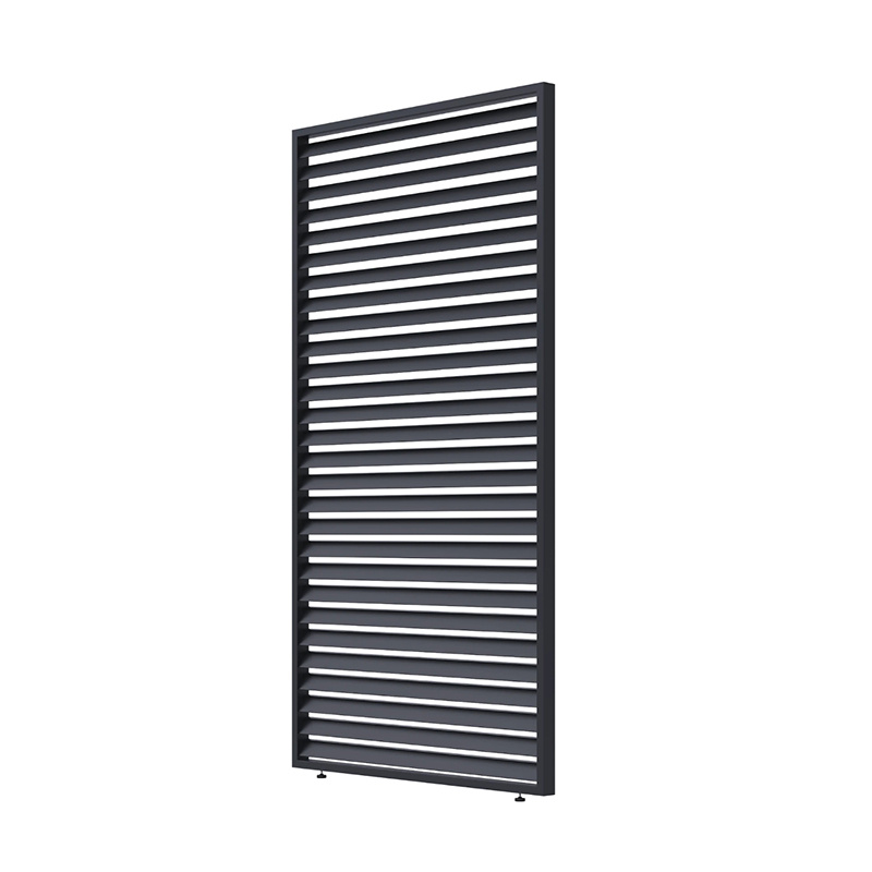 Pevný lamelový panel tvoří boční stěnovou výplň hliníkových pergol. Používá se k vytvoření boční ochrany pergoly před deštěm a sluncem. Lamelový panel má hliníkový rám a fixní (neotočné) lamely. Celý panel je v barvě antracit - mat. Jednotlivé panely lze navzájem napojovat a tím vytvořit zastínění celé stěny pergoly. Panel o šíři 1,3m se používá (3ks) na stěnu pergoly 4m