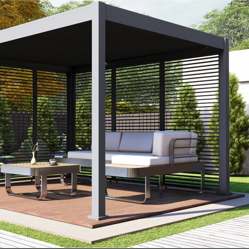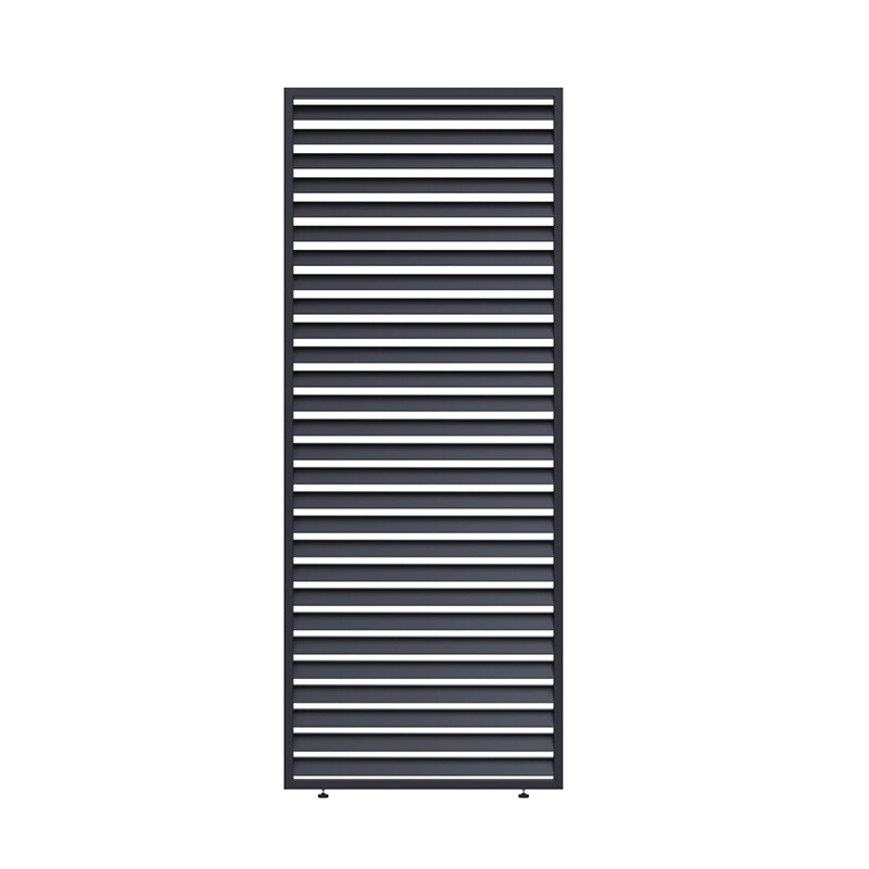 Pevný lamelový panel tvoří boční stěnovou výplň hliníkových pergol. Používá se k vytvoření boční ochrany pergoly před deštěm a sluncem. Lamelový panel má hliníkový rám a fixní (neotočné) lamely. Celý panel je v barvě antracit - mat. Jednotlivé panely lze navzájem napojovat a tím vytvořit zastínění celé stěny pergoly. Panel o šíři 1m se používá (3ks) na stěnu pergoly 3m
