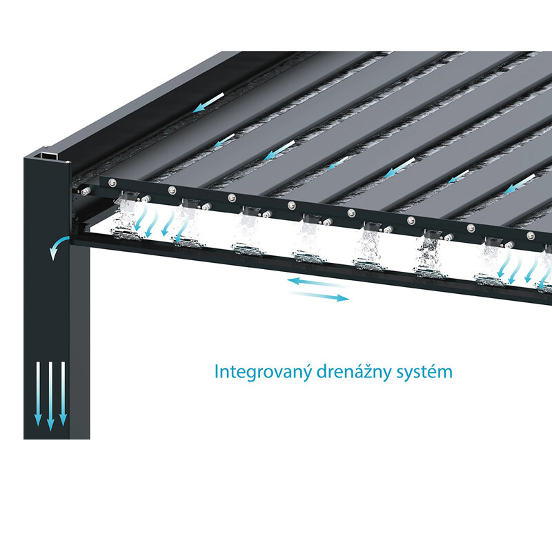 Hliníkové pergoly mohou být doplněné o boční lamelové panely, nebo rolety. Vše najdete v kategorii Pergoly.