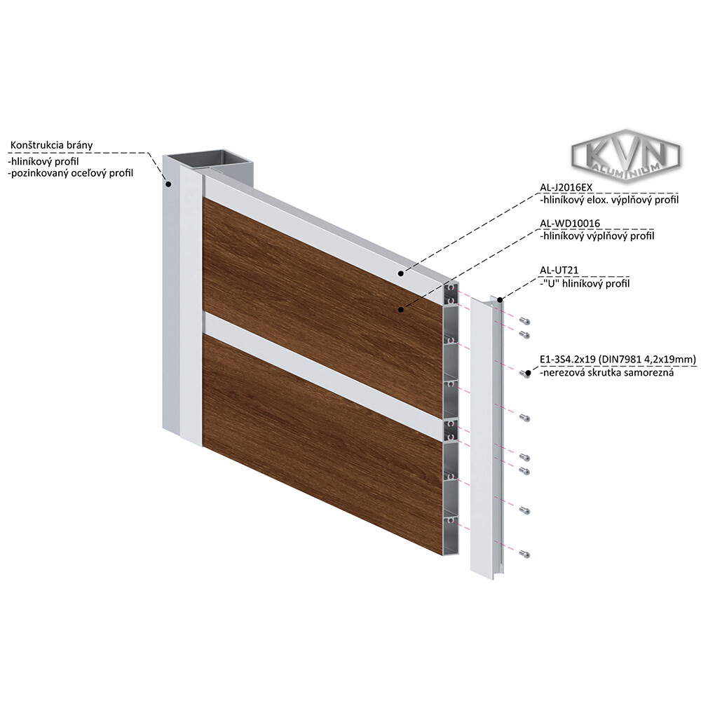 Tento systém umožňuje montovat celá výplňová pole, jen za pomocí nerezových vrutů, bez nutnosti sváření hliníku. Doporučená velikost polí je do 2m. V případě delších pak je nutné použít výztuhy.