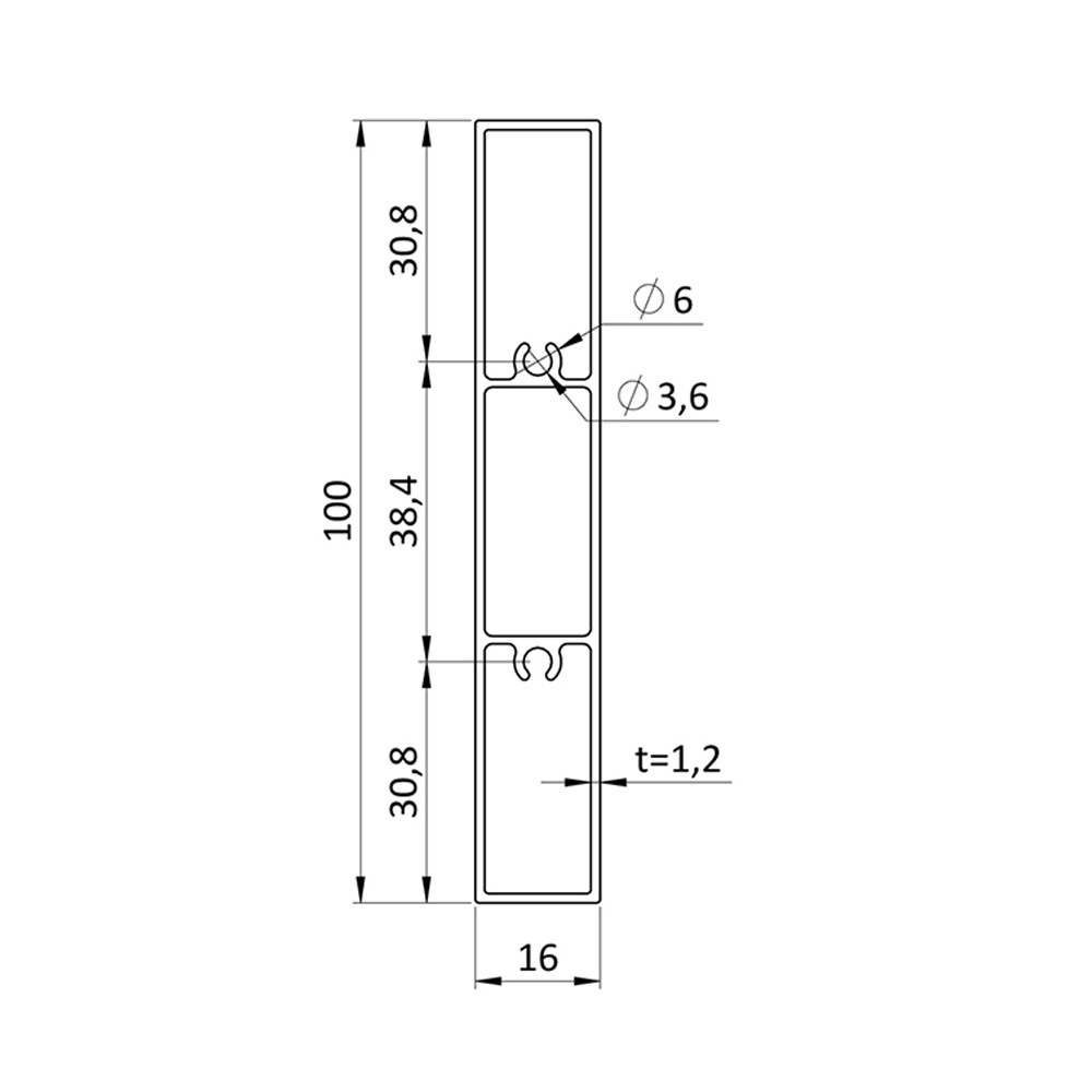 Hliníková lamela se dodává v rozměru 100x16mm a délce 6m.
