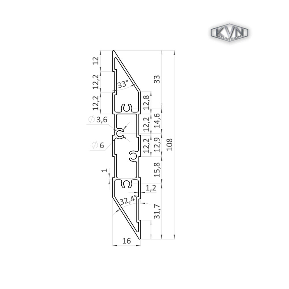 Hliníkový profil kosý 108x16mm, na výplň, AL-LAFD-6