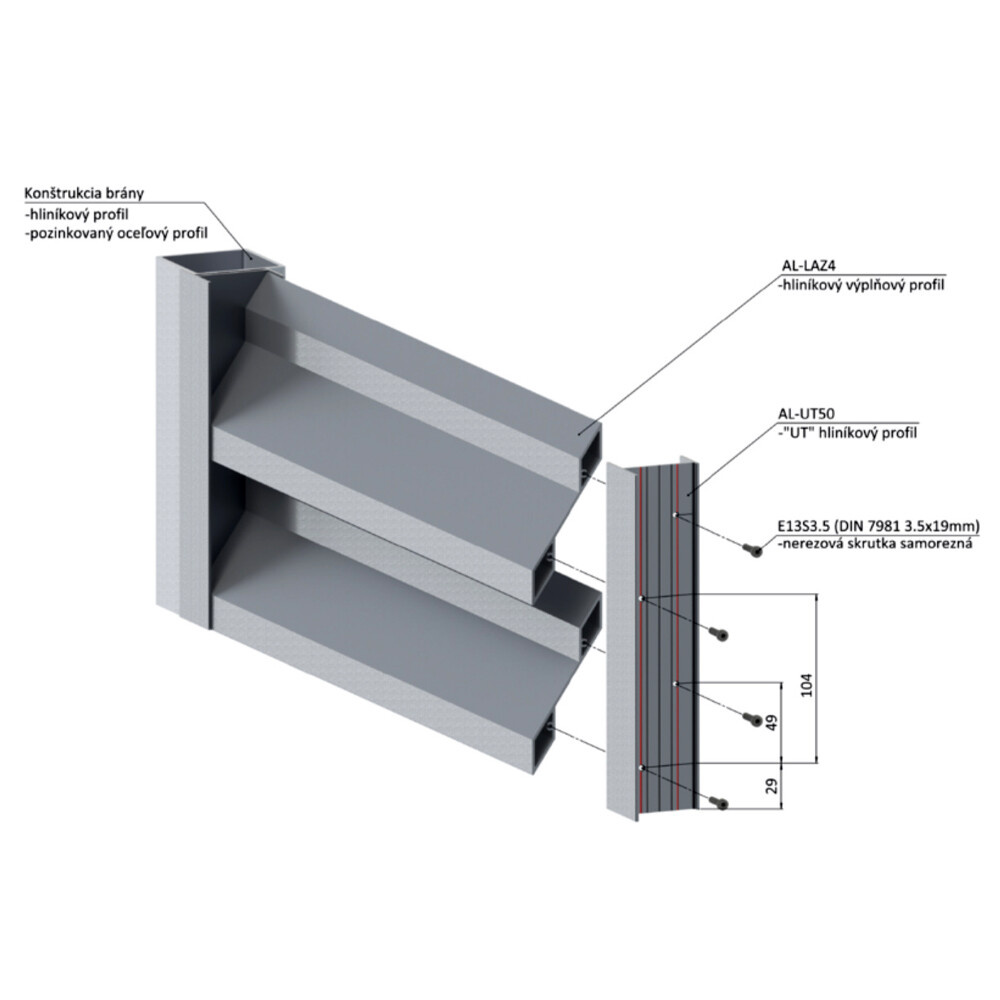 Lamelové profily jsou vyrobené z přírodního hliníku EN AW-6060 T66. Samotný profil je tříkomorový s vnitřními drážkami pro přišroubování, pomocí nerezových vrutů, k rámu plotového pole. Takový rám snadno vytvoříte pomocí U hliníkového profilu. U profily mají místo pro kotvení vyznačené drážkou, a spojení lamel s rámem je pak jen otázka horizontálního vyměření.