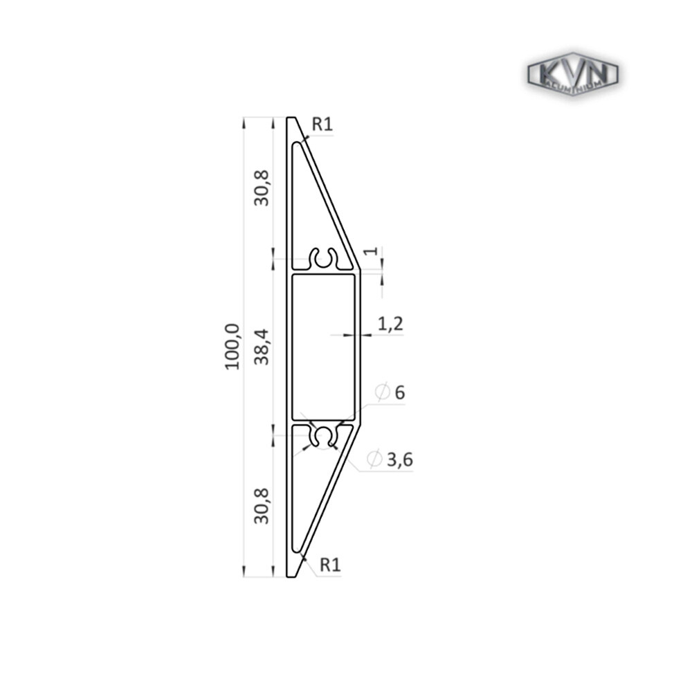 Hliníkový profil lichoběžník 100x16mm, na výplň, AL-LAL-6
