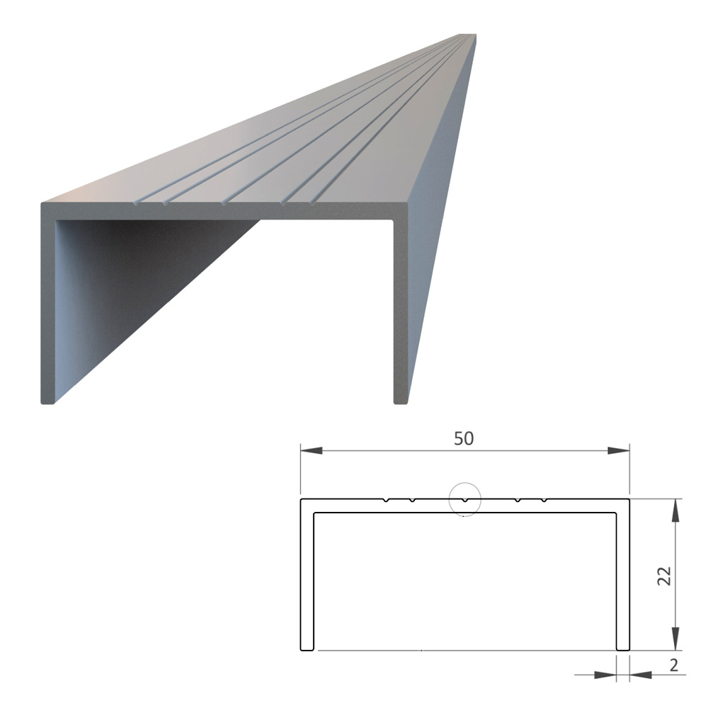 U profil, se dodává v rozměru 50x22mm a délce 6m bez povrchové úpravy.