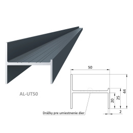 Hliníkový UT profil - struktura RAL7016, 50x44mm, AL-UT50-7016-6