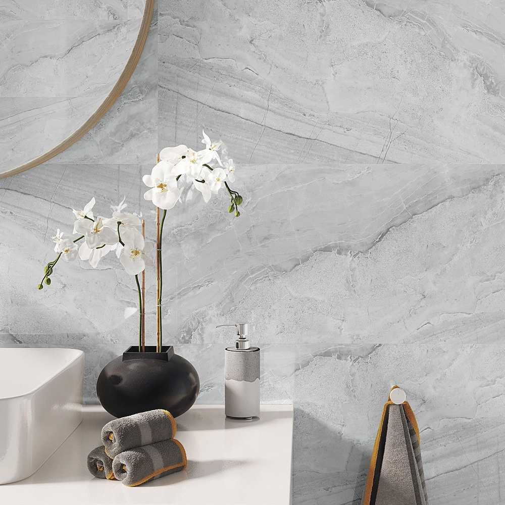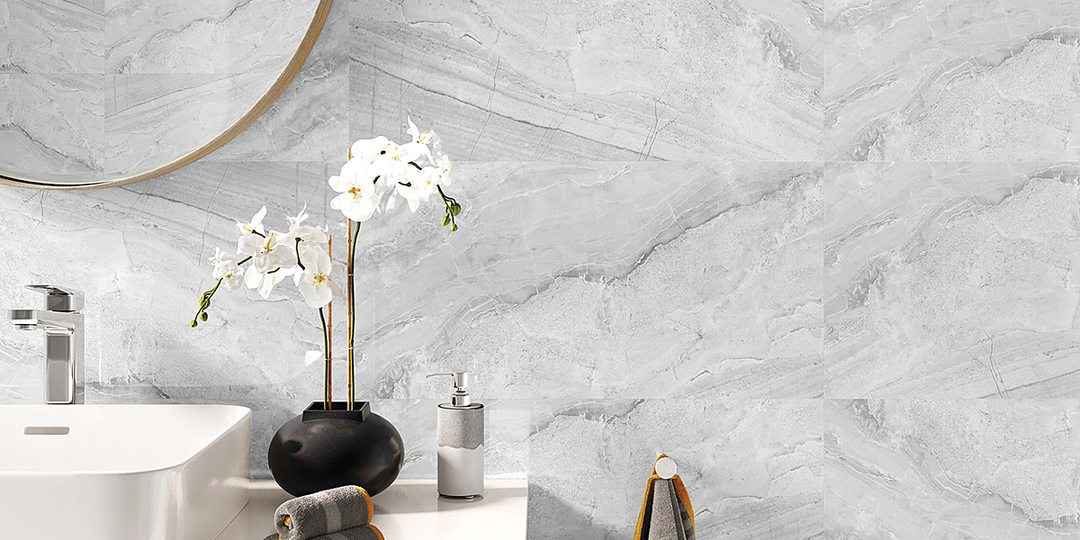 Dekor Ash Grey je vysoce lesklý.