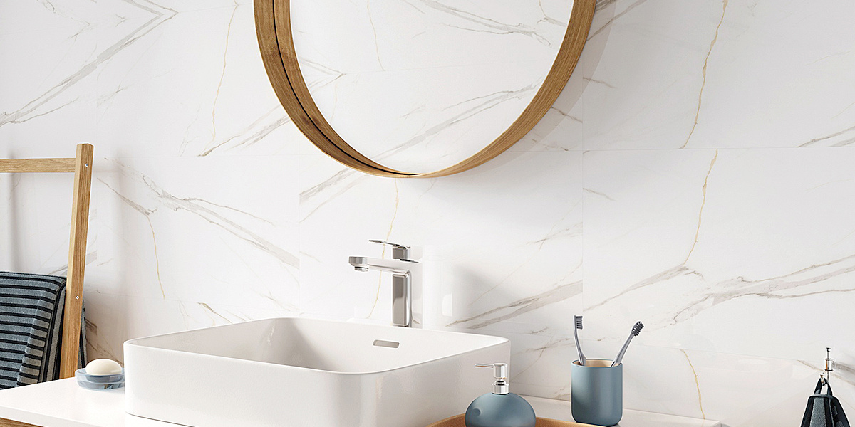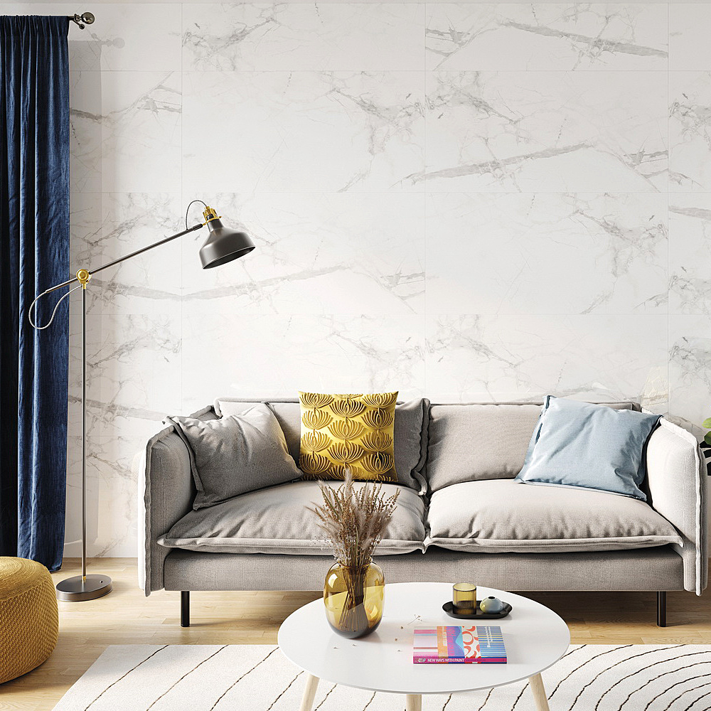Dekor Calacatta White je vysoce lesklý.