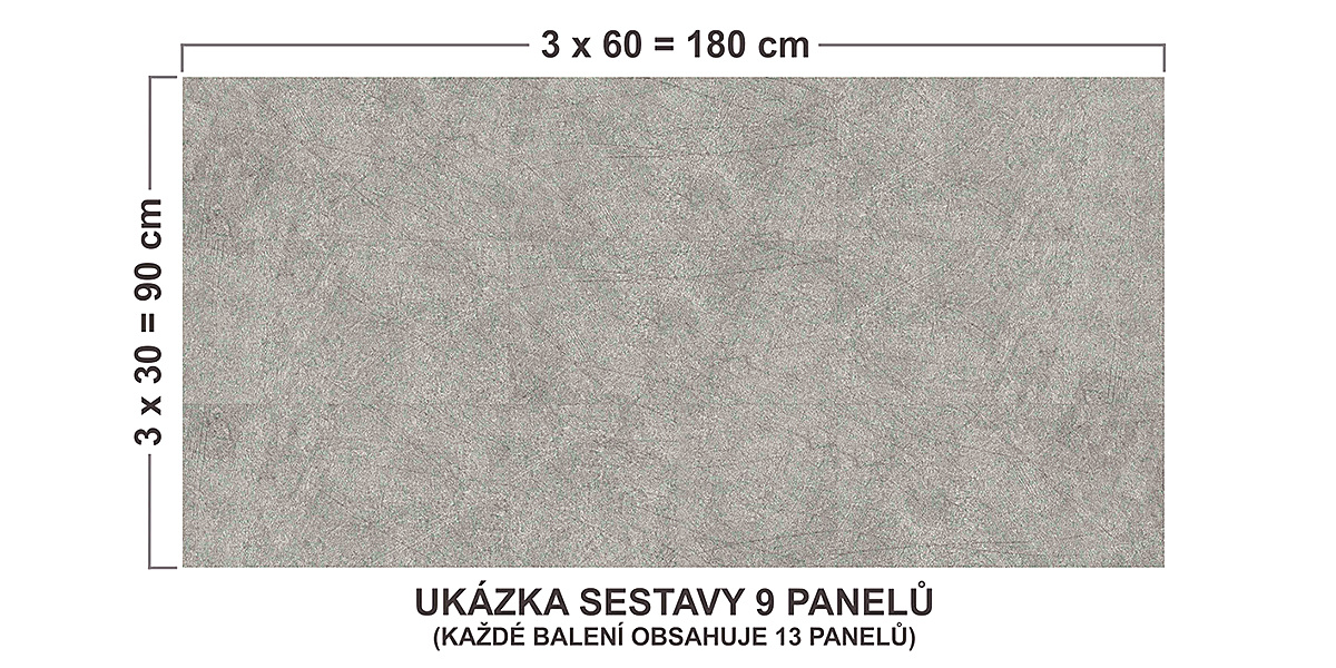Obklad je velmi tuhý a při tom lehký - cca 8,7kg/m2. Interiérové obklady Vilo SPC se dodávají v rozměru 600x300x4mm. Jeden panel tedy pokryje plochu 0,18m2. Prodává se na kusy, nebo celých baleních po 13 kusech (2,34m2).