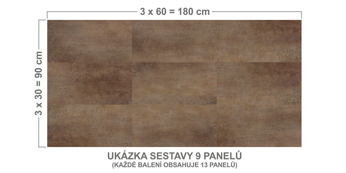 Obklad je velmi tuhý a při tom lehký - cca 8,7kg/m2. Interiérové obklady Vilo SPC se dodávají v rozměru 600x300x4mm. Jeden panel tedy pokryje plochu 0,18m2. Prodává se na kusy, nebo celých baleních po 13 kusech (2,34m2).
