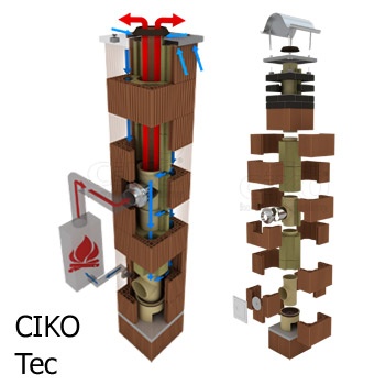 Komín CIKO® Tech s řízeným přívodem vzduchu je vhodný zejména pro nízkoenergetické a pasivní domy. Jedná se o kompletní jednoprůduchový komínový systém pro všechny druhy paliv (pevné kapalné, plynné) s přirozeným i nuceným odtahem spalin. Komín lze použít pro kotle na tuhá paliva, plynové turbokotle, krbová kamna, krby.