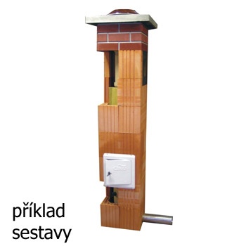 Komín má vlastní komínový průduch tvořený z kruhových hrdlových vložek o vnitřním průměru 140, 160, 180, nebo 200mm a výšce 330mm. Vložky obsahují i speciální tvarovku pro čištění, kondenzátní jímku, přípojku sopouchu 90stupňů. Speciálně tvarovaná minerální izolace o výšce 0,5m se liší tloušťkou, dle průměru sopouchu.