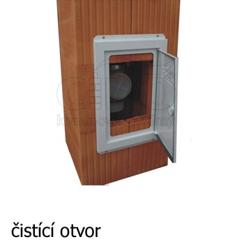 Komínový systém je v základní sestavě zakončen betonovou krycí deskou 560x560mm s přívodem vzduchu a ukončovacím prvkem GAS s límcem. Obsahuje i plechové čistící dvířka. Komínový systém v nadstřešní části je připraven pro omítnutí.