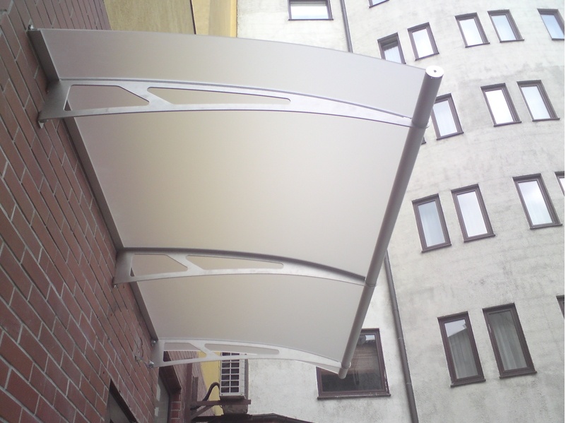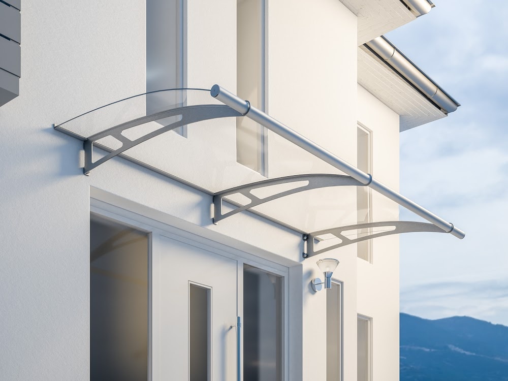 Vchodová stříška Lightline 1900 moderního designu kombinuje zastřešení akrylátovým sklem a konzol z nerezové kartáčované oceli. Slouží k ochraně vstupu, před povětrností, u rodinných domů, administrativních a komerčních budov. Pro zvýšení komfortu může být doplněna boční stěnou shodného provedení.