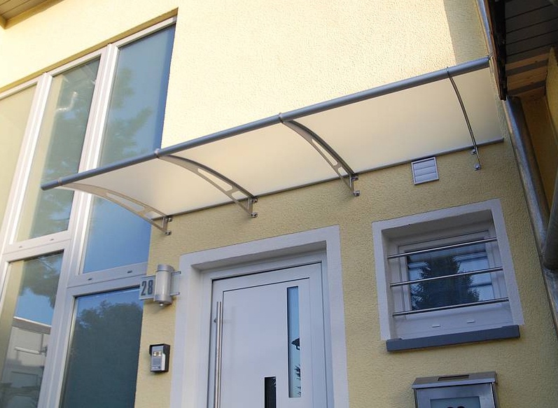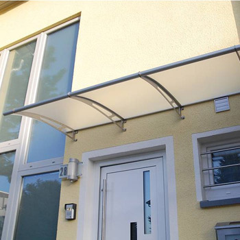 Pro zabezpečení vodotěsnosti má vchodová stříška u fasádní strany, hliníkový úhelník s gumovým těsněním.