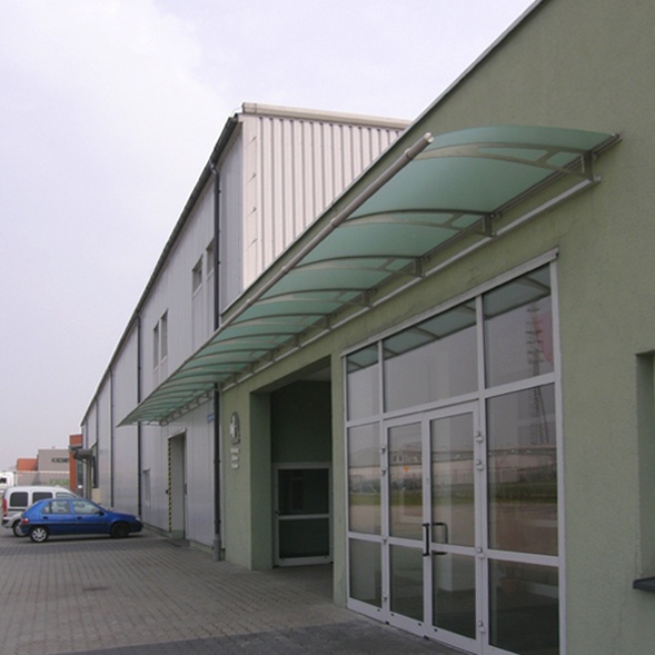 Pro zabezpečení vodotěsnosti má vchodová stříška u fasádní strany, hliníkový úhelník s gumovým těsněním.
