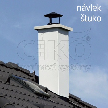 Jednoprůduchový nadstřešní návlek Štuko slouží k opláštění nadstřešní části komínu. Osazuje se až po oplechování komínu kolem prostupu střechou, ve spodní části se pak kotví vruty.