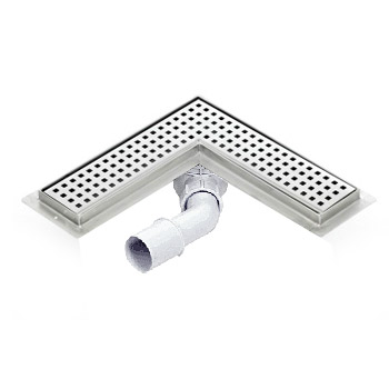 Nerezový odtokový žlab do sprchy KFLp s přírubou, je lomený, má dvě ramena a používá se ve sprchových koutech jako rohový žlab. Umožňuje odtok vody zapustit přímo do podlahy a tím vytváří bezbariérové řešení.