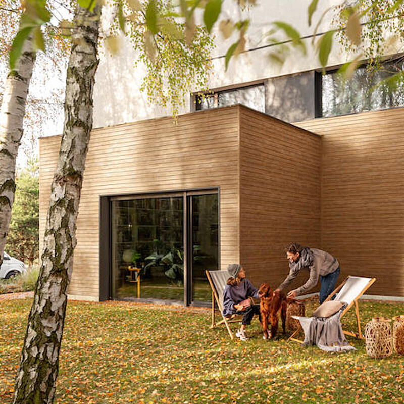 Kerrafront je fasádní obklad montovaný jako lícní vrstva provětrávaných fasád. Fasádní obklad je vyroben z pěněného PVC s lícní stranou potaženou matnou, UV odolnou folií, věrně napodobující kresbu dřeva.