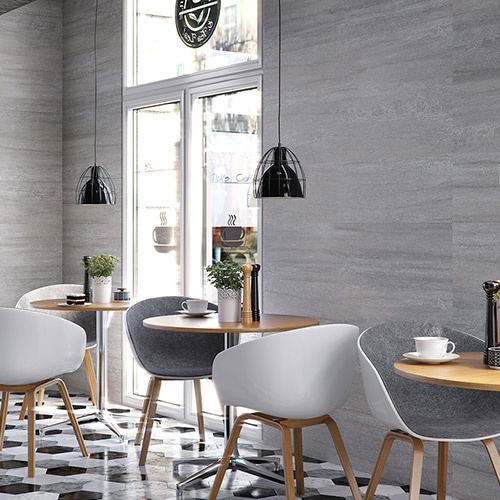 Obklad Kerradeco je po celém obvodu opatřen systémem péro - drážka a po napojení je spoj neviditelný a vodotěsný. Tím vznikne rovný, bezespárý a omyvatelný povrch, navíc s akusticky izolačními vlastnostmi (Rw= 60 dB).