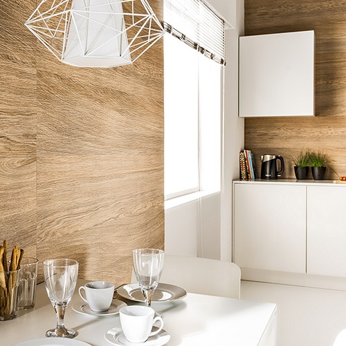 Kerradeco Wood Brandy je interiérový panel pro obložení stěn, nebo jejich částí k estetickému dokončení interiéru. Tento dezén patří do kolekce WOOD. Interiérový panel, díky své tuhosti, plně nahrazuje sádrokarton, dřevěné palubky, či keramické obklady. Je tuhý, akusticky izolační, vodotěsný a UV záření odolný a při tom lehký.