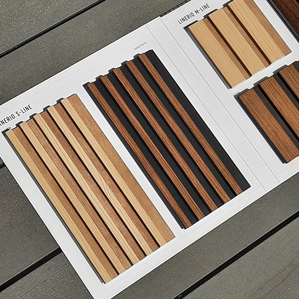 Panel je velmi tuhý a při tom lehký - cca 5kg/m2. Díky použitému materiálu a lamelové struktuře, panely tlumí echo ve velkých místnostech. Obkladový panel Linerio Je vyrobený z modifikované pěny a líc obkladu je potištěn technologie hot-stamping. Díky tomu věrně imituje texturu dřeva a je odolný proti poškrábání.