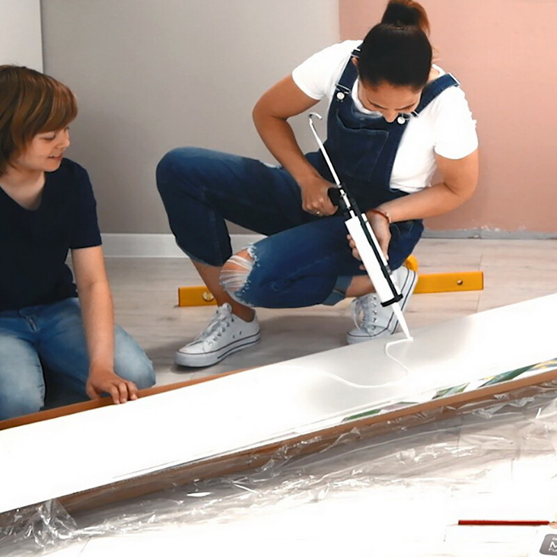 Na rovné podklady je možné obkladový panel lepit přímo. Pokud není podklad rovný, panely kotvíme na srovnané dřevěné latě pomocí vrutů, nebo spon. Obkladový panel pokládáme nejčastěji svisle, ale lze i vodorovně. Rohy a ukončení jsou řešeny pomocí univerzální dokončovací pásky B6, nebo plastových profilů.
