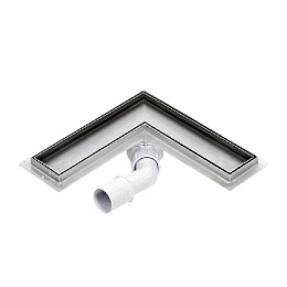 Odtokový žlab pro sprchy je lomený, má dvě ramena a používá se ve sprchových koutech jako rohový žlab a osazuje se do podlah o minimální výšce 85mm včetně dlažby.
