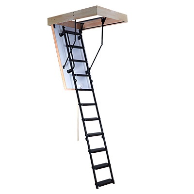 Půdní schody jsou složené ze třech hlavních dílů. Dřevěného rámu o výšce 170mm, zatepleného víka a ocelového žebříku. Zateplené víko s těsněním je oboustranně opatřeno bílou HDF deskou. Na víku je namontován složený třídílný ocelový žebřík. V levo pak ocelové madlo. Půdní schody jsou opatřeny párem ocelových pružin, které brzdí pád při otevírání a napomáhají při zavírání.