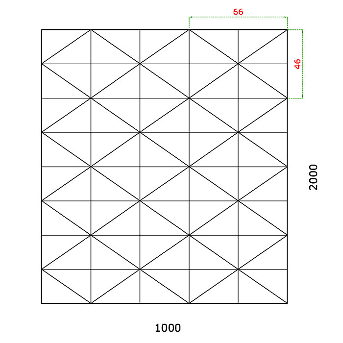 Vylisovaný vzor - jehlan má rozměry 66x46mm. Výplňový plech se dodává se v rozměru 2000x1000x1,1mm o hmotností 17,7kg. Tolerance rozměru +/- 0,5%.