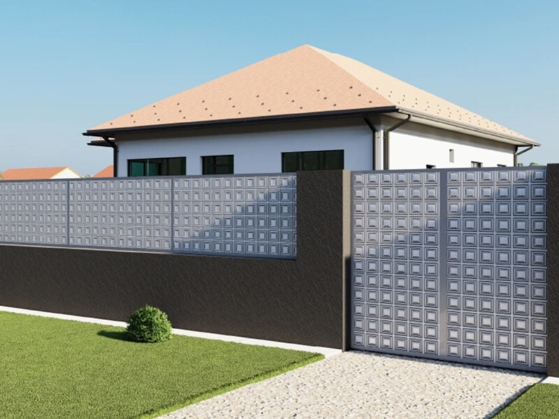 Pozinkovaný plech s vylisovaným 3D vzorem se hodí na výplň plotových polí, nebo stěn kovových konstrukcí.