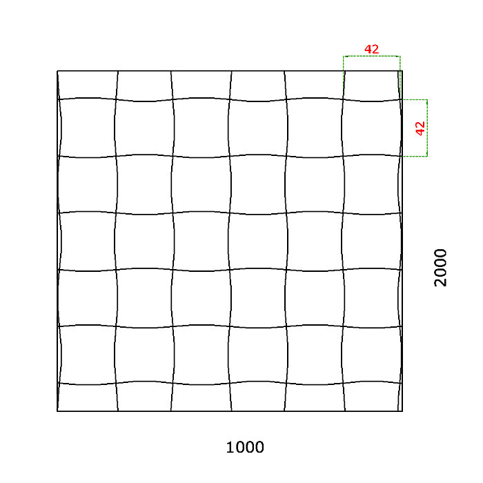 Vylisovaný vzor - hrubá tkanina má rozměry 40x40mm. Výplňový plech se dodává se v rozměru 2000x1000x1,2mm o hmotností 18,8kg. Tolerance rozměru +/- 0,5%.
