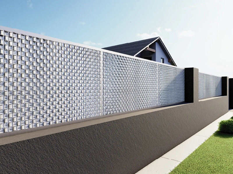 Pozinkovaný plech s vylisovaným 3D vzorem se hodí na výplň plotových polí, nebo stěn kovových konstrukcí.