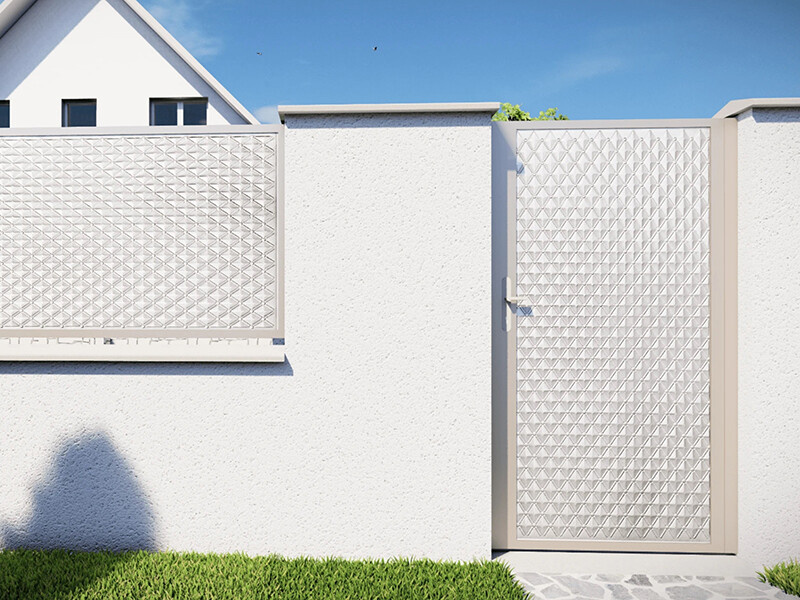 Pozinkovaný plech s vylisovaným 3D vzorem se hodí na výplň plotových polí, nebo stěn kovových konstrukcí.
