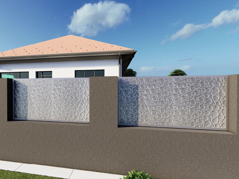 Pozinkovaný plech s vylisovaným 3D vzorem se hodí na výplň plotových polí, nebo stěn kovových konstrukcí.