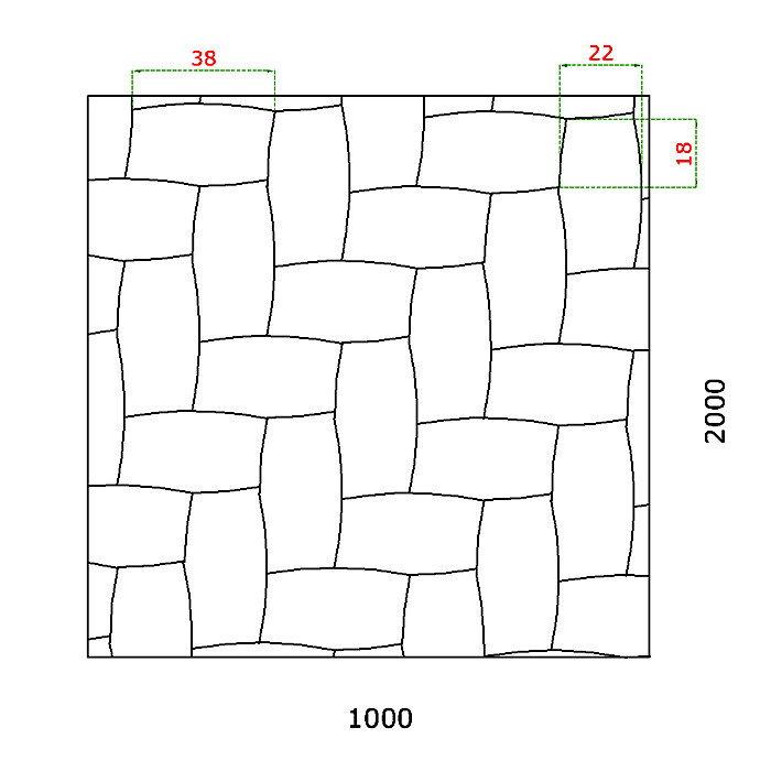 Vylisovaný vzor - parkety mají rozměry 38x22mm. Výplňový plech se dodává se v rozměru 2000x1000x1,2mm o hmotností 18,8kg. Tolerance rozměru +/- 0,5%.