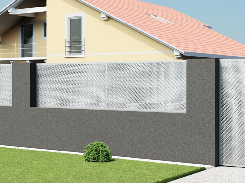 Pozinkovaný plech s vylisovaným 3D vzorem se hodí na výplň plotových polí, nebo stěn kovových konstrukcí.
