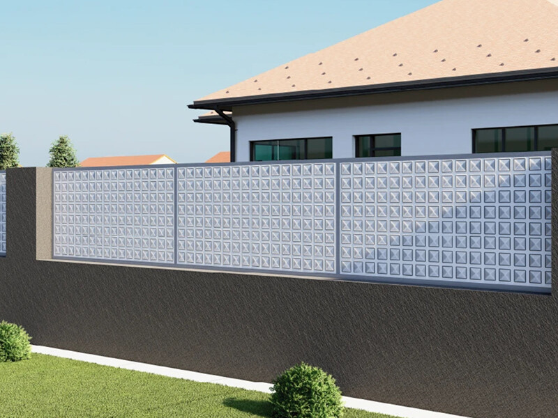 Pozinkovaný plech s vylisovaným 3D vzorem se hodí na výplň plotových polí, nebo stěn kovových konstrukcí.