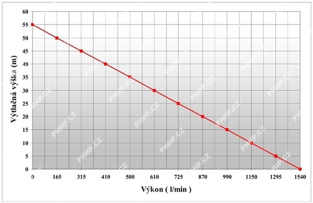 Rozměry 1030x740x470mm, maximální průtok 1540l/min, maximální výtlak 55m. Konstrukce čerpadlu umožňuje "běh na sucho" bez poškození.