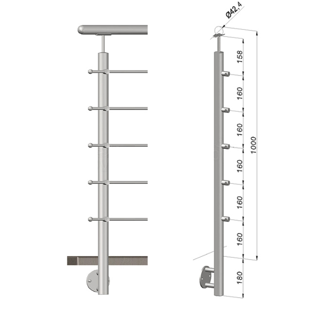 Nerezový sloupek má průměr 42,4mm při síle stěny 2mm. Výška sloupku je 1137,6mm a po namontování madla vytvoří zábradlí o celkové výšce 1m. Sloupky nerezového zábradlí se osazují osově ve vzdálenosti 800-1200mm.