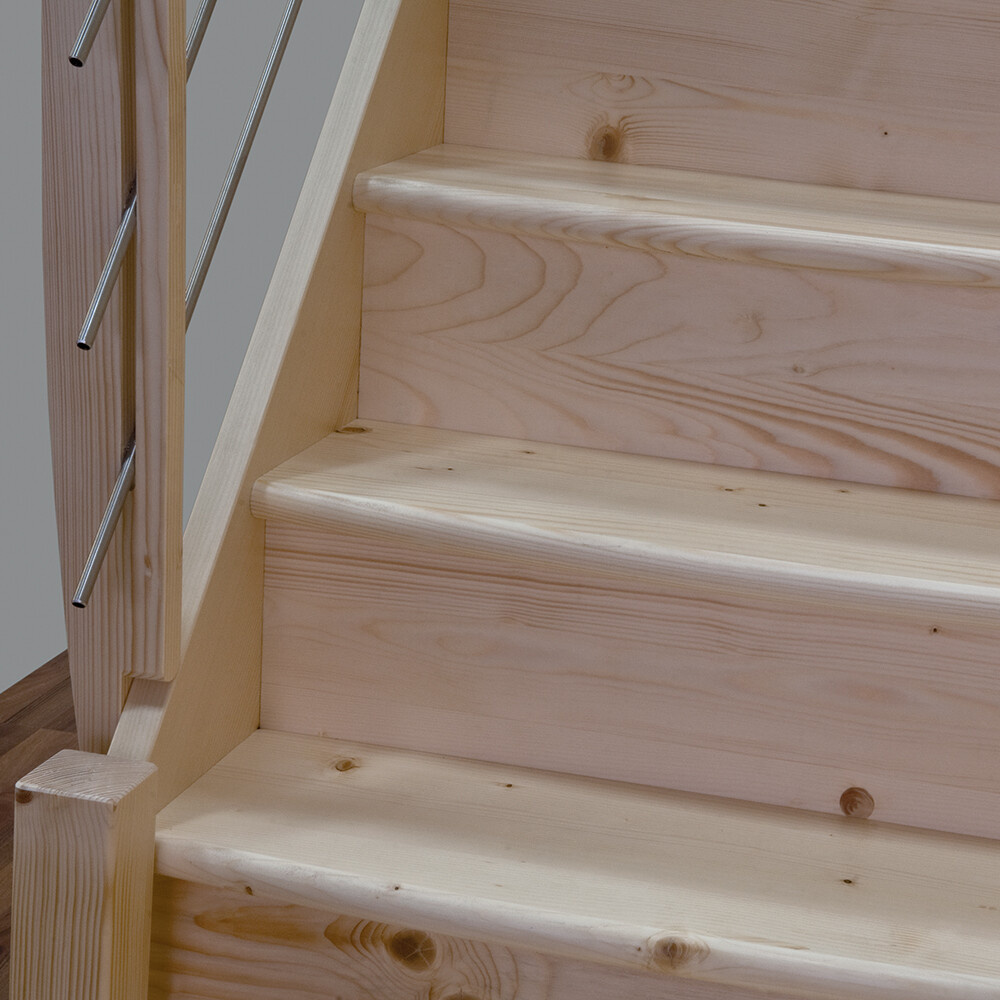 Přímé schodiště je vyrobeno ze smrkového dřeva o síle 30mm. Schodiště se dodává samostatně bez schodišťového zábradlí a bez balustrády, to je možné pořídit za příplatek.