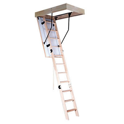 Půdní schody jsou celodřevěné složené ze třech hlavních dílů. Dřevěného rámu o výšce 135mm, zatepleného víka a vlastního žebříku. Zateplené víko s těsněním je oboustranně opatřeno bílou HDF deskou. Na víku je namontován složený třídílný žebřík a madlo na levé straně. Půdní schody jsou opatřeny párem ocelových pružin, které brzdí pád při otevírání a napomáhají při zavírání.